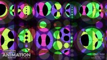 Initially an enchanting dance of circles gradually veers into the purely abstract realm through superimposing two drafting templates, resulting in a cascade of 'chance' animation.